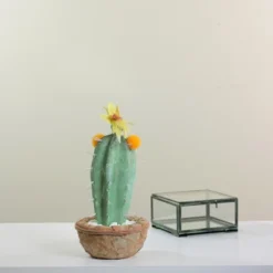 Northlight 12″ Flowering Cactus Artificial Potted Plant – Green/Brown